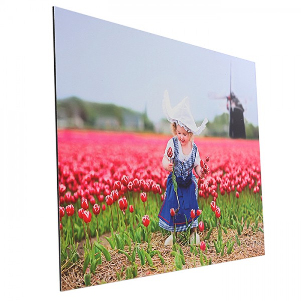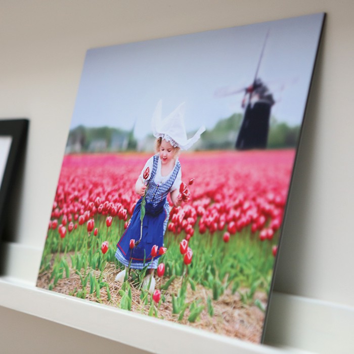 We drukken jouw foto op dibond enkelzijdig en werken de randen perfect af. De achterkant is een mat witte laag. De voorkant bedrukken we direct met een printer. Bij de afwerking frezen we de zijkanten. De foto op dibond is drie millimeter dik.