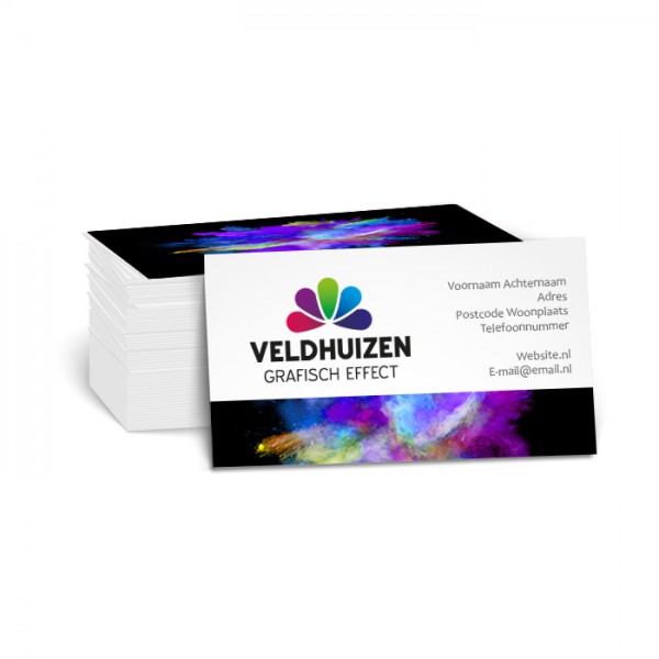 Of je nu gaat voor de klassieke uitvoering, gevouwen of zelfklevend: Veldhuizen Grafisch Effect vervult de meest uiteenlopende wensen. We bieden een breed palet aan mogelijkheden om visitekaartjes te drukken en je kunt kiezen uit de meest uiteenlopende materialen, papierdiktes en veredelingen.