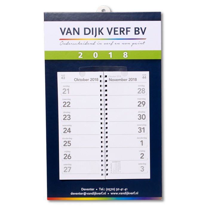 De gepersonaliseerde weekkalender is een sterk marketingmiddel: elke dag kom je onder de aandacht bij je doelgroep. Onze weekkalender is de klassieker onder de kalenders. Bijna iedereen heeft er wel één thuis of op kantoor hangen.