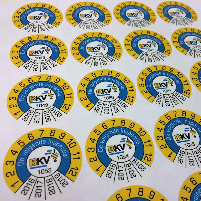 Keuringstickers zijn tegenwoordig niet meer weg te denken. Voor veel bedrijven zijn ze zelfs verplicht om aan bepaalde NEN-normen te voldoen. Wij bieden keuringstickers die je eenvoudig plakt. Je kunt de stickers op vel ontvangen. Dan zitten er meerdere stickers voor het keuren op één vel, zodat je niet met onhandige losse stickertjes zit.