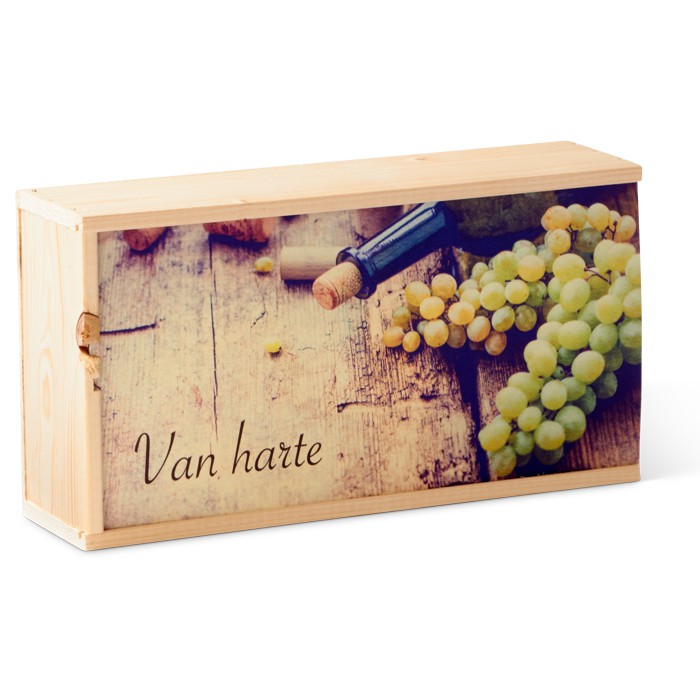 Met een gepersonaliseerde wijnkist geef je jouw relaties een uniek geschenk dat ze bijblijft. De houten wijnkistjes zijn mooi afgewerkt en beschikken over een schuifdeksel, waardoor je relatie hem nog lang zal bewaren en gebruiken voor andere doeleinden. Jouw boodschap blijft dus ook lang onder de aandacht.