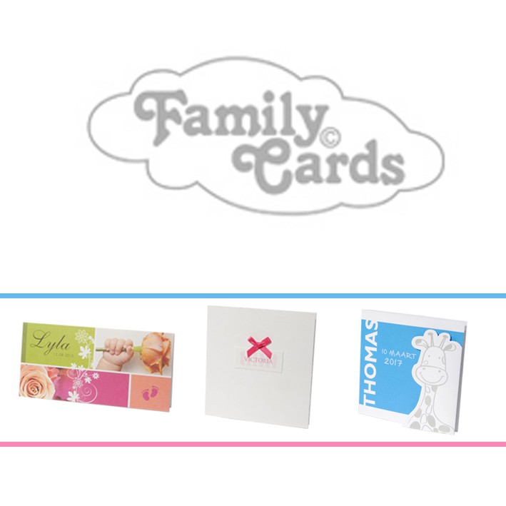 FamilyCards maakt al tientallen jaren lieve geboortekaartjes. Het eigen ontwerpteam heeft zich hierin helemaal gespecialiseerd en besteedt veel aandacht aan de kwaliteit van de kaartjes. Met veel oog voor detail geven de ontwerpers vaak een extra touch aan het geboortekaartje met een koordje, labeltje of strikje.