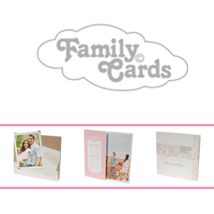 Van harte gefeliciteerd met jullie voorgenomen huwelijk! De huwelijksdag is een van de mooiste dagen uit jullie leven. Bij de voorbereiding komt nogal wat kijken. Denk alleen al aan het uitzoeken van de trouwkleding, de locatie en de muziek. Een mooie trouwkaart om jullie gasten uit te nodigen mag natuurlijk niet ontbreken. FamilyCards heeft altijd dé perfecte trouwkaart en is gespecialiseerd in het maken van stijlvolle en eigentijdse huwelijkskaarten.