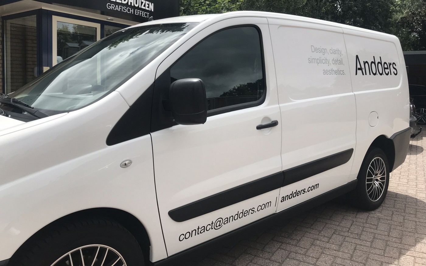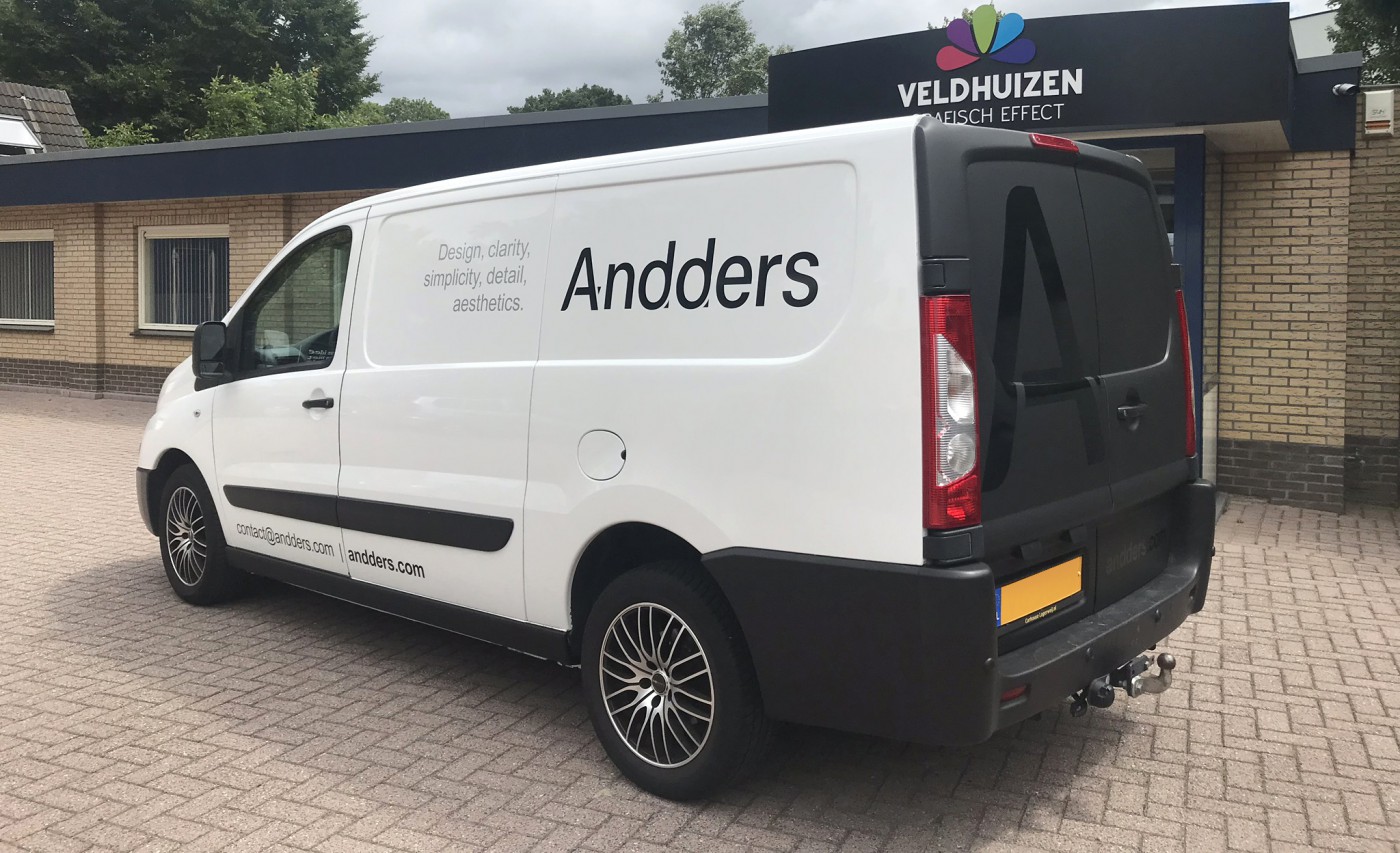Strak, eenvoudig en toch chique. Met die wensen van Andders Beton in ons hoofd zijn we aan de slag gegaan met een ontwerp voor de belettering van hun bedrijfswagen. Een ontwerp dat naadloos aansluit op de kenmerkende simplistische huisstijl van dit vernieuwende bedrijf.