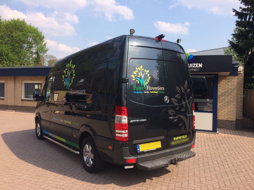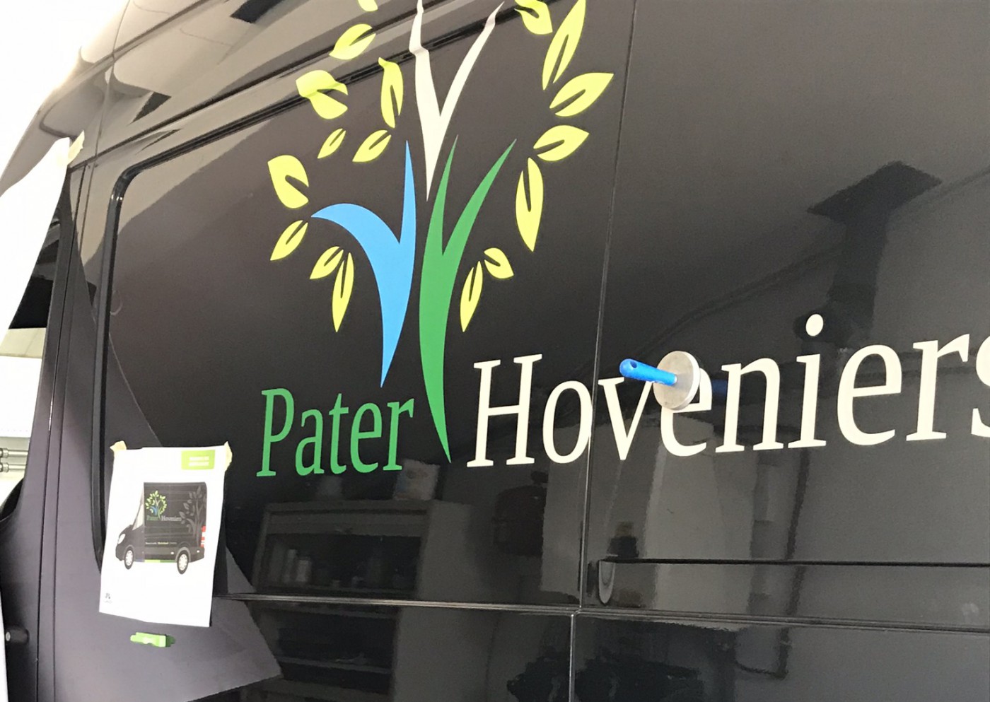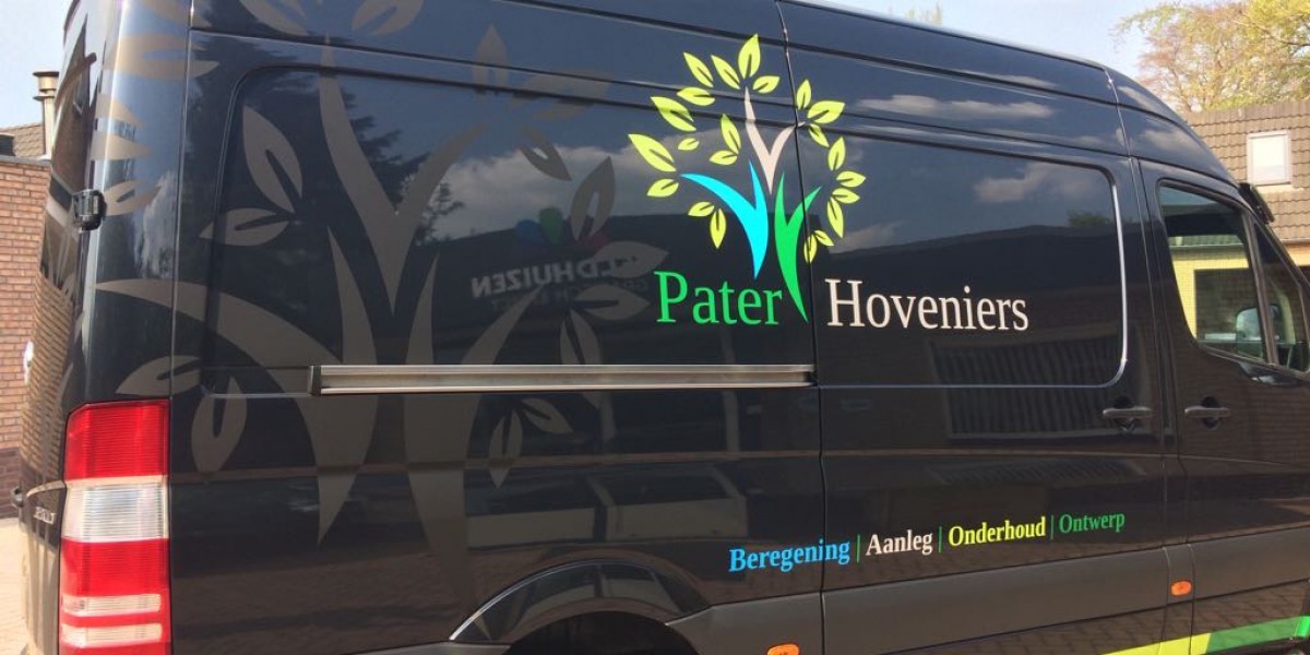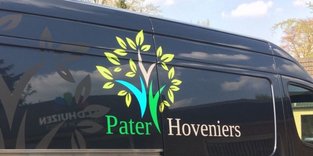 Pater Hoveniers verzorgt het ontwerp, de aanleg en het onderhoud van tuinen. Met veel passie en plezier gaan zij aan de slag met één doel voor ogen: een fraai ontworpen tuin, die deskundig is aangelegd en onderhouden. Die passie voor groen hebben wij uitgebeeld in het ontwerp van het logo, de huisstijl en de belettering van de bedrijfswagen.