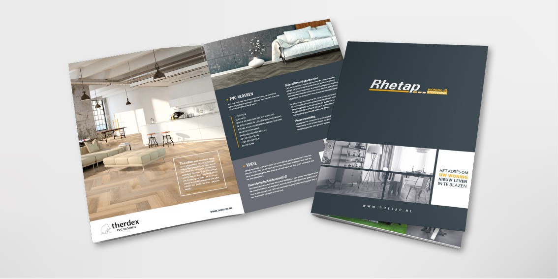 Rhetap verzorgt de complete stoffering voor woningen. Of het nu gaat om vloeren, raambekleding of zelfs buitenzonwering. Het Barneveldse familiebedrijf had de wens om een eigen brochure te ontwikkelen en klopte bij ons aan. Onze vormgever Michelle heeft het eigentijdse ontwerp en de opmaak verzorgd, geheel passend bij de wensen en de stijl van deze ondernemer.