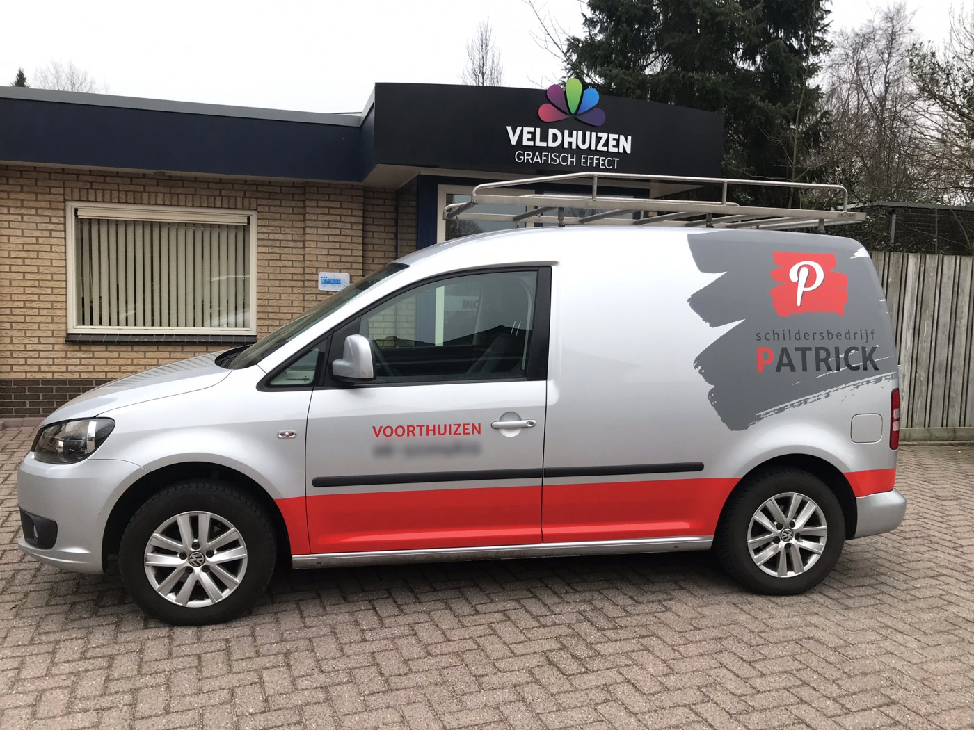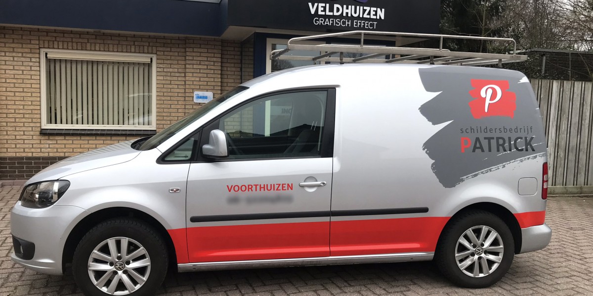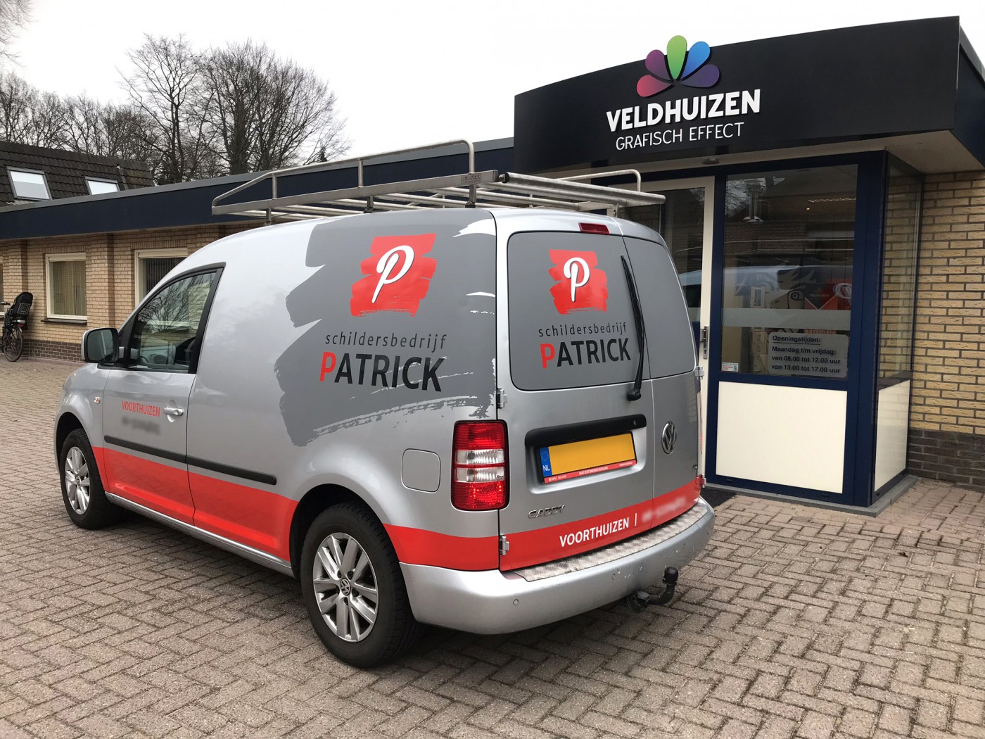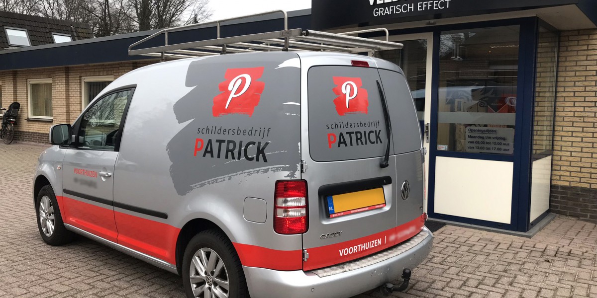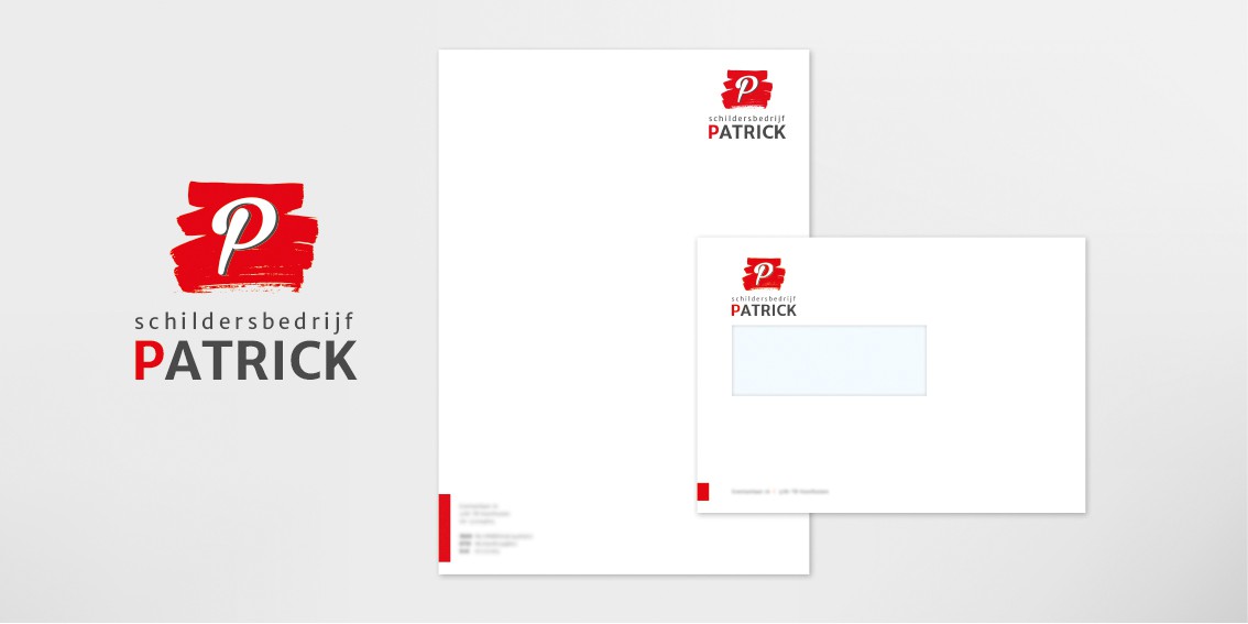 Een blik op de huisstijl van Schildersbedrijf Patrick en je weet om wat voor soort bedrijf het gaat. Voor deze schilder uit Voorthuizen hebben we het logo, de huisstijl en de belettering van de bedrijfswagen ontworpen.