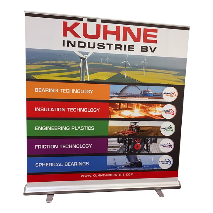 Met een roll-up banner sta je altijd klaar voor beurzen, presentaties, congressen en andere evenementen. Maar ook in een winkel of op kantoor breng je een boodschap of actie perfect onder de aandacht met een roll-up banner. Je rolt de banner uit het systeem en je creëert direct een groot display voor je beursstand.